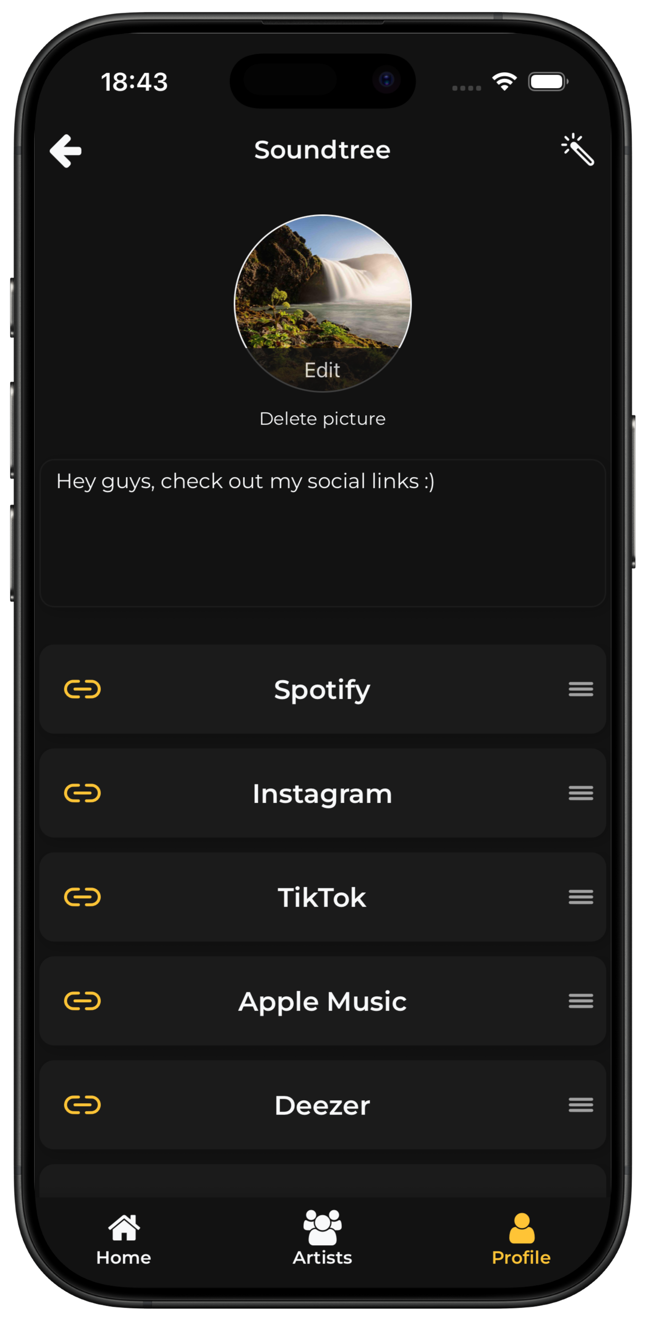 Use our Soundtree feature to create a personalized profile that you can share with others on your social media platforms. Showcase your music, upcoming events, and other links all in one place. It's a great linktree alternative and your digital business card for the music world.